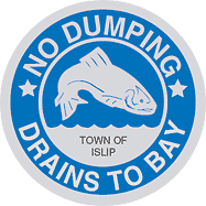 KIC is pleased to announce that medallions obtained by the Islip Town Environmental Council will now be affixed to all storm drains that access the Great South Bay. The attractive blue and silver medallions replace the original Storm Drain Stenciling Project implemented by KIC in 1991 to heighten public awareness about reducing contamination of surface and ground waters. Under that project with stencils provided by the New York State Sea Grant Extension Program at Cornell, KIC volunteers identified storm drains which flow into our drinking water or directly into the Great South Bay.